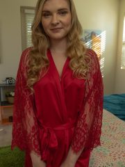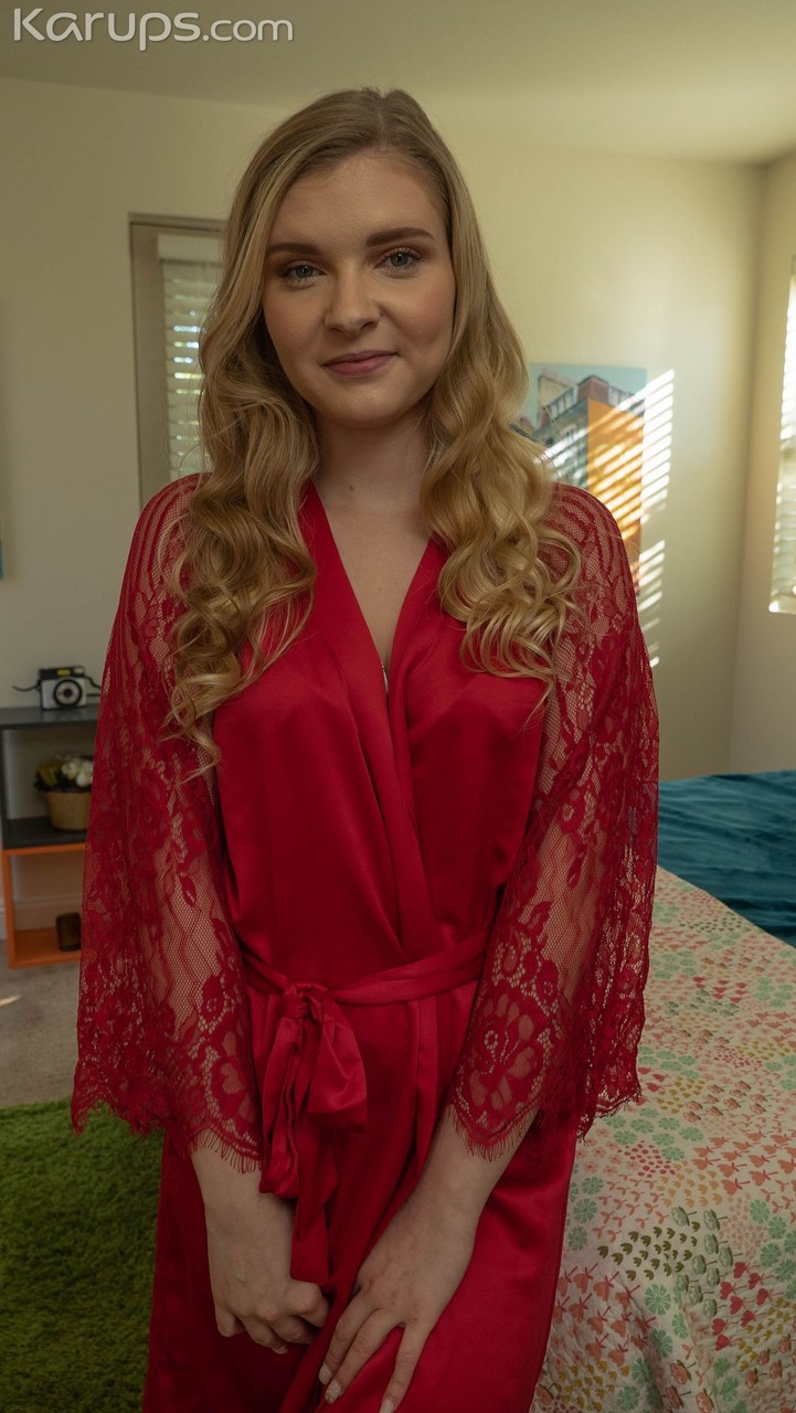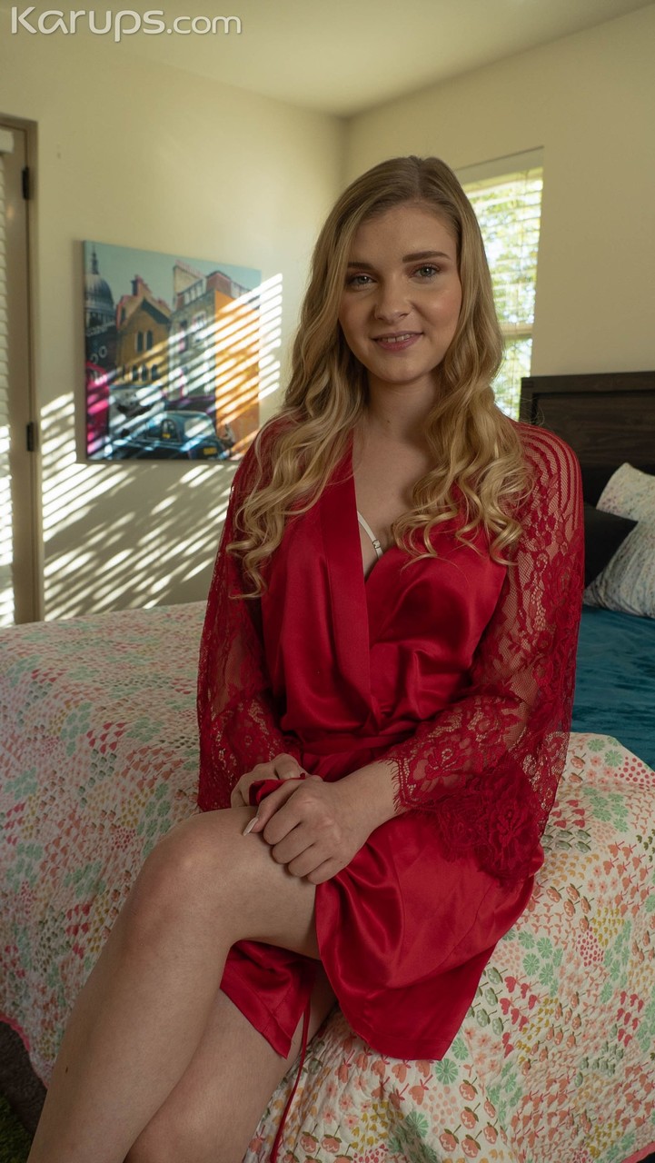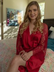 Curvy blonde amateur Harlow West strips off her lingerie in the bedroom