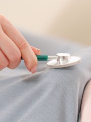 Sexy nurse Kate Quinn gets her shaved pussy fucked on the couch
